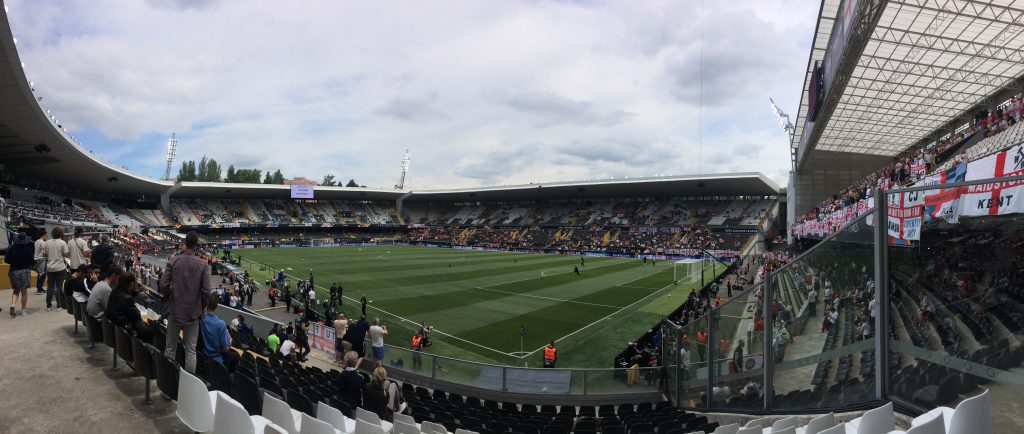 We arrived about 11:30am and the stadium was about a 15 minute walk from the train station. We walked to the ticket collection point first of all, passing the square where many England fans seemed to be congregating, many entrepreneurial locals had trolley fulls of cans and bottles of beer, undercutting the local bars.